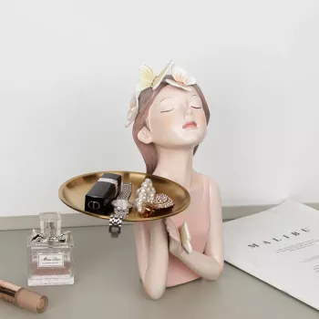Fairy Girl Statue with Golden Butterfly Tray